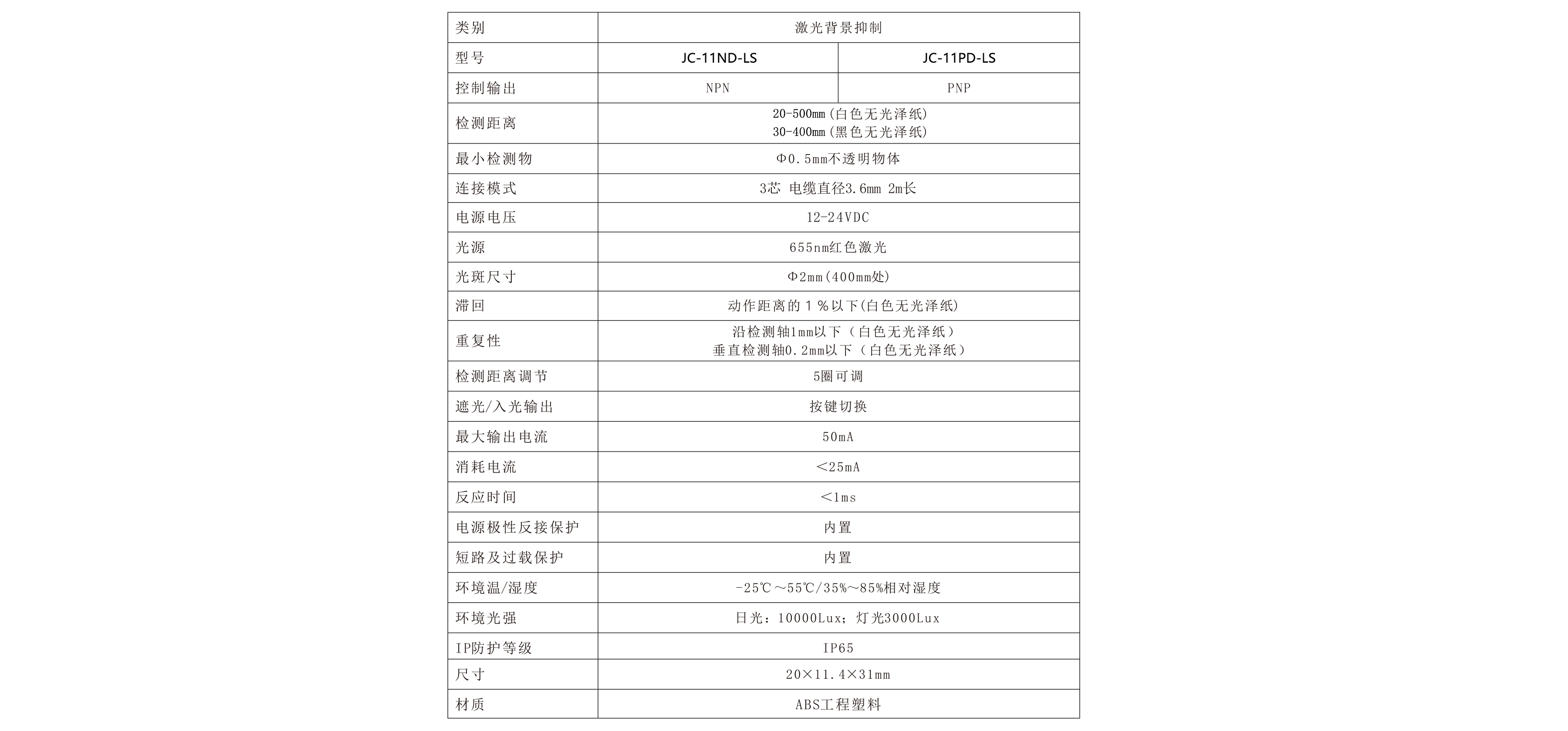 JC-11D-LS激光背景抑制光電開關(guān),采用的是激光光源,光斑更小,檢測(cè)距離更遠(yuǎn),可以準(zhǔn)確地實(shí)現(xiàn)背景抑制功能。