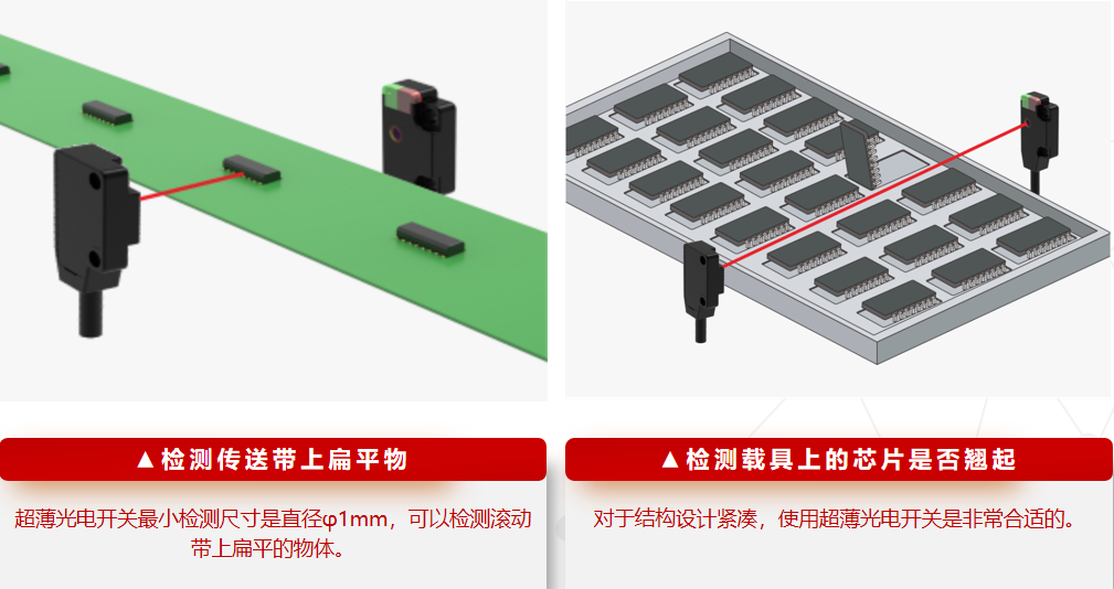 超薄光電常應(yīng)用于自動化設(shè)備中的精確定位;電子設(shè)備中的紙張/介質(zhì)檢測;機器人領(lǐng)域的極限位置檢測;醫(yī)療設(shè)備的微型化設(shè)計;消費電子產(chǎn)品中的狀態(tài)監(jiān)測。