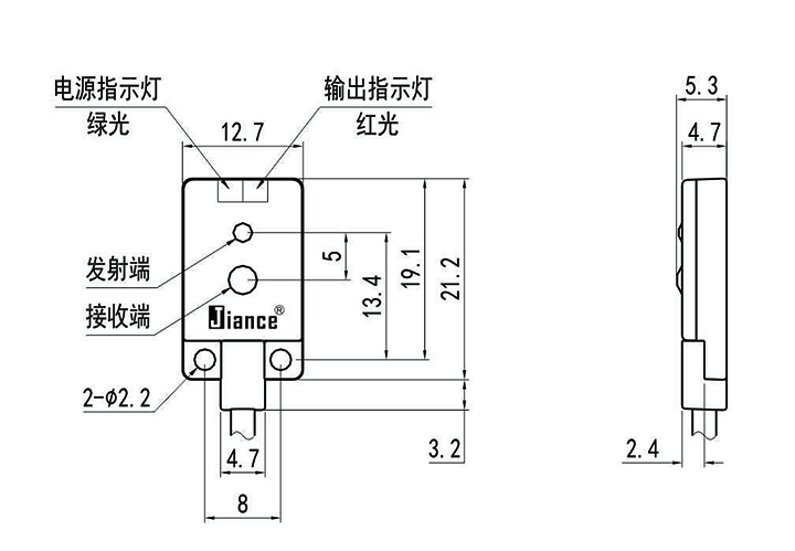 Jiance 超薄反射光電開關(guān)JC-FD系列,具有背景抑制效果,小光斑檢測更精準。
