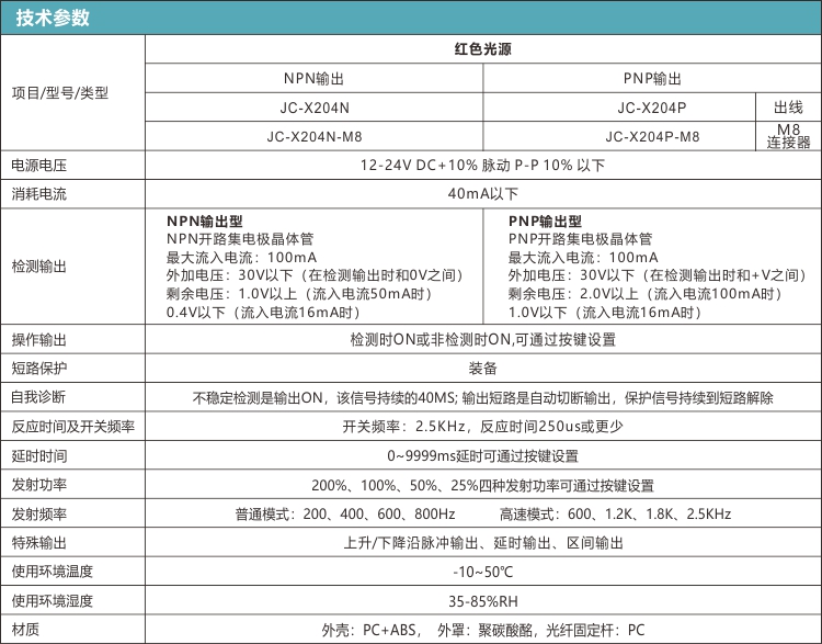 Jiance 光纖放大器 JC-X204系列的操作菜單和市場主流產(chǎn)品相似,方便操作人員上手。光纖放大器常常搭配光纖進行檢測,光纖可以做成各種探頭,如耐高溫、直頭、彎頭、U型等,應(yīng)用場景豐富。各種場景都可以有效應(yīng)對。