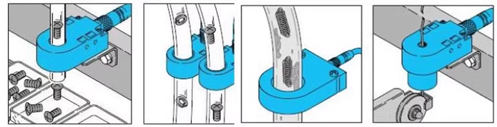 JIANCE環(huán)型接近開關(guān)的感應(yīng)區(qū)呈環(huán)型狀,對(duì)通過(guò)其中的金屬物體進(jìn)行感應(yīng),多數(shù)情況下配合塑料管道使用,管道可以限制被檢測(cè)物的運(yùn)動(dòng)路徑,讓其必定從環(huán)型接近的感應(yīng)區(qū)通過(guò),從而精確檢測(cè)。