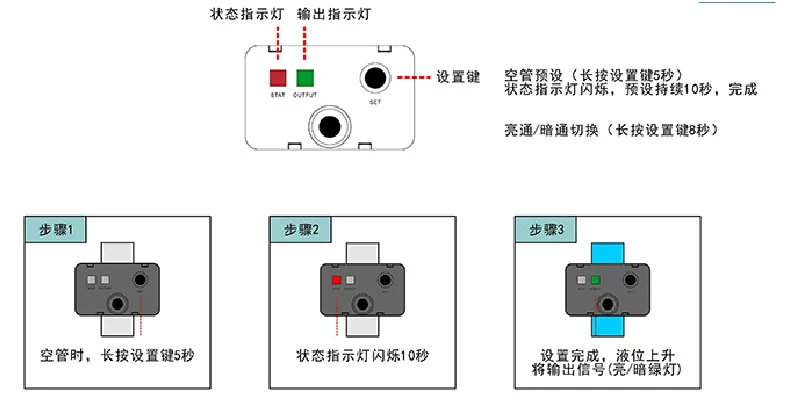 使用時,先在空管的位置長按 設(shè)置按鈕 5秒進行示教學(xué)習(xí),預(yù)設(shè)空管狀態(tài)。陳舊管道可重新預(yù)設(shè)空管狀態(tài)解決。