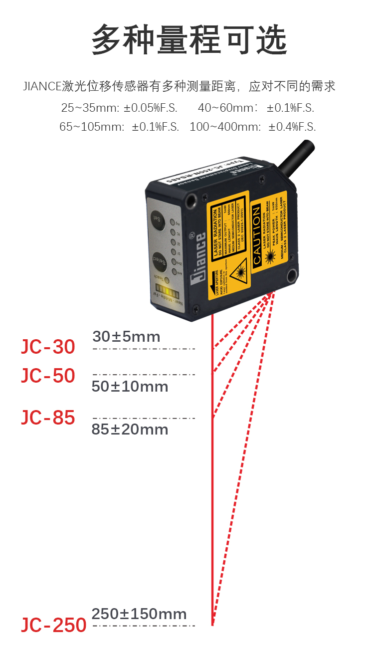 JIANCE 激光位移傳感器是一種利用激光技術(shù)進(jìn)行測(cè)量的傳感器,它能夠非接觸地精確測(cè)量被測(cè)物體的位置、位移等變化。