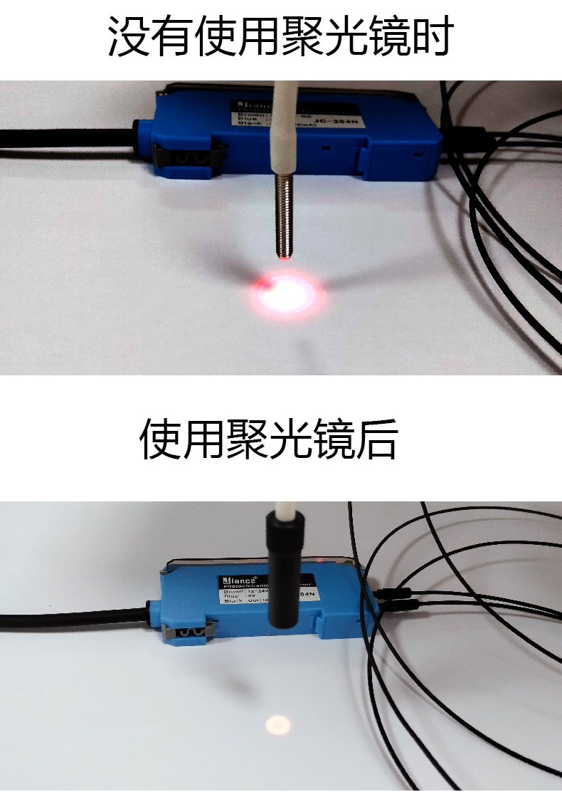 Jiance光纖傳感器 配合聚光鏡收縮光斑提準(zhǔn)檢測位置