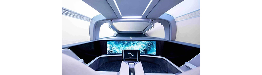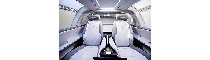 車內(nèi)不同于傳統(tǒng)汽車不設(shè)有方向盤、剎車、油門等,內(nèi)部只有一個(gè)觸摸式的全面屏控制臺(tái)和各種智能化配置。車內(nèi)環(huán)境寬敞,可用語音進(jìn)行控制各種操縱。