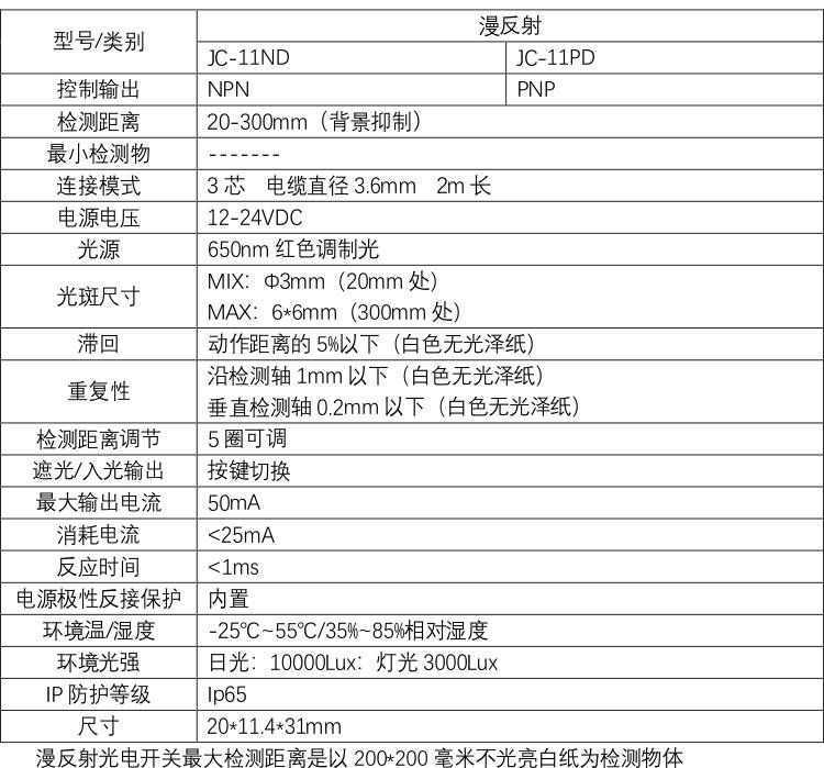 光斑小,檢測(cè)距離在20mm-300mm之內(nèi)可隨意調(diào)節(jié)。