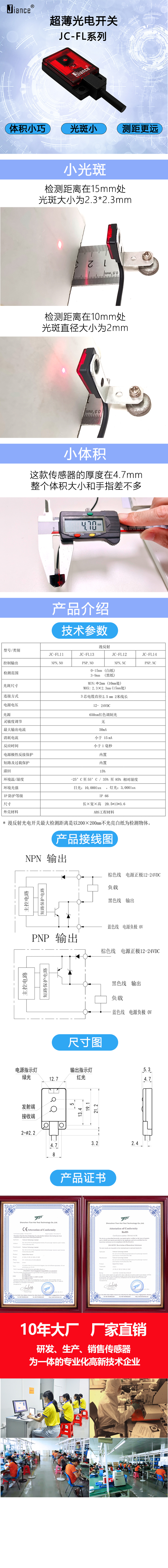 超薄光電開關JC-FL系列,可替代同款歐姆龍產品