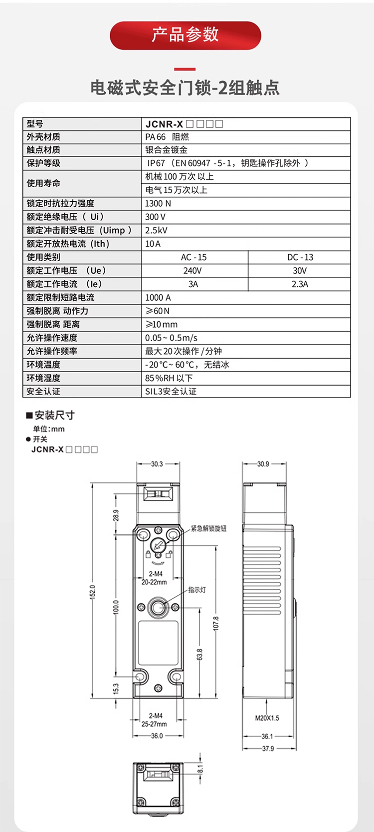 JIANCE 電磁式安全門鎖 兩組觸點(diǎn) JCNR-X系列