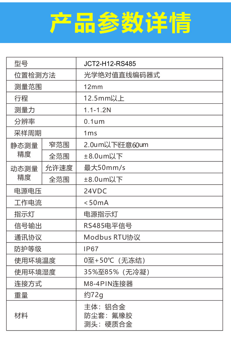 Jiance 接觸位移傳感器 JCT2-H12-RS485