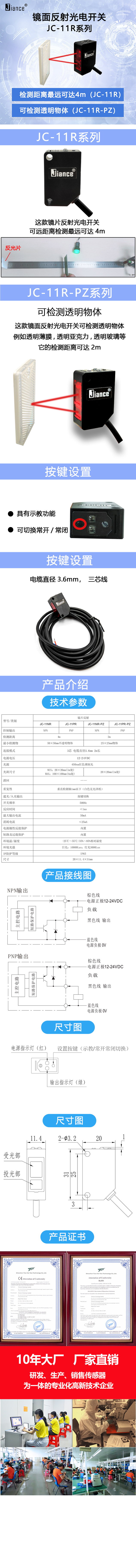 Jiance鏡片反射光電開關(guān)JC-11R系列