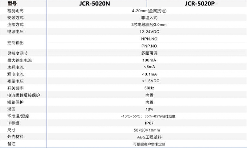 JCR-5020N電容式接近開關(guān)可替代E2K-F10MC1-A